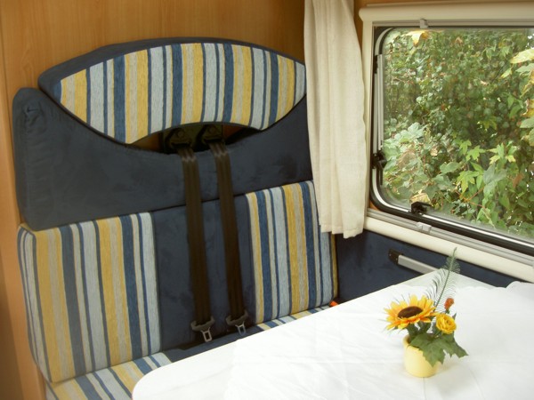 Stossfänger weiss, Alkoven, 4 er Sitzgruppe, Doppelbett hinten quer mit