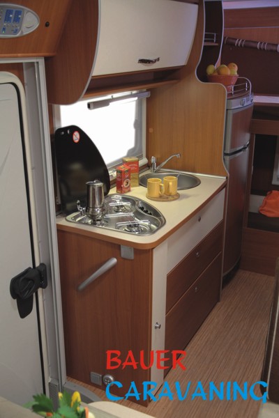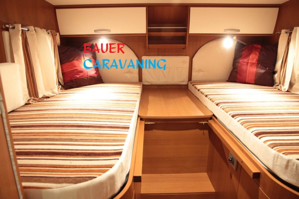 ABS, Klima, ASR, Airbag, Beifahrerairbag, Tempomat, 6 Schlafplätze, 6 Sitzplätze, 4er Sitzgruppe, Etagenbetten hinten quer, Küche, Dusche, WC, Heizung, Warmwasserversorgung, große Seitenstauklappen, Etagenbett hochklappbar, 2 Außenstauklappen, Kühlschrank 150 Ltr mit separatem Gefrierschrank.