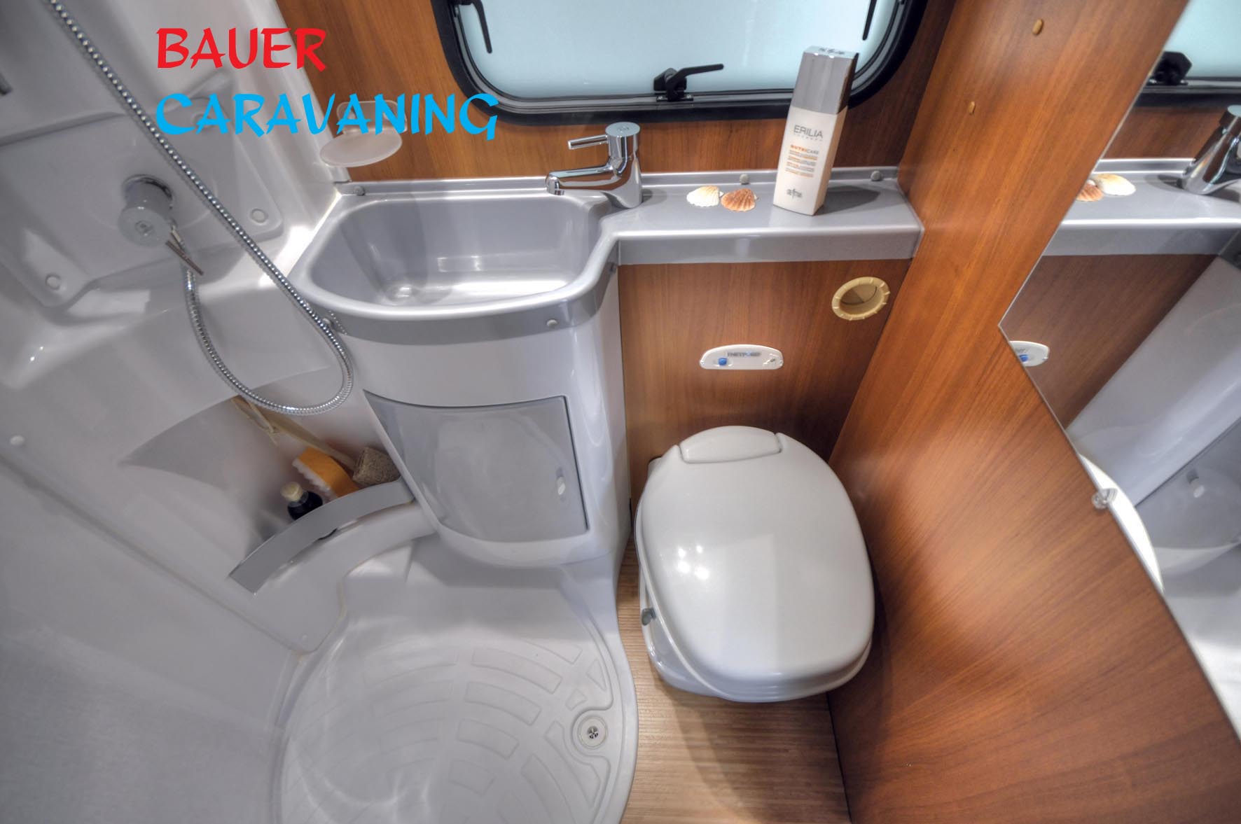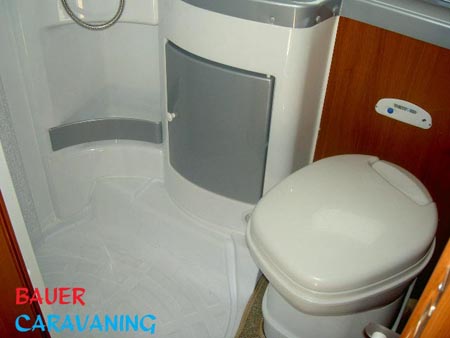 4 Schlafplätze, Nasszelle mit separater Dusche und fester Duschtür,