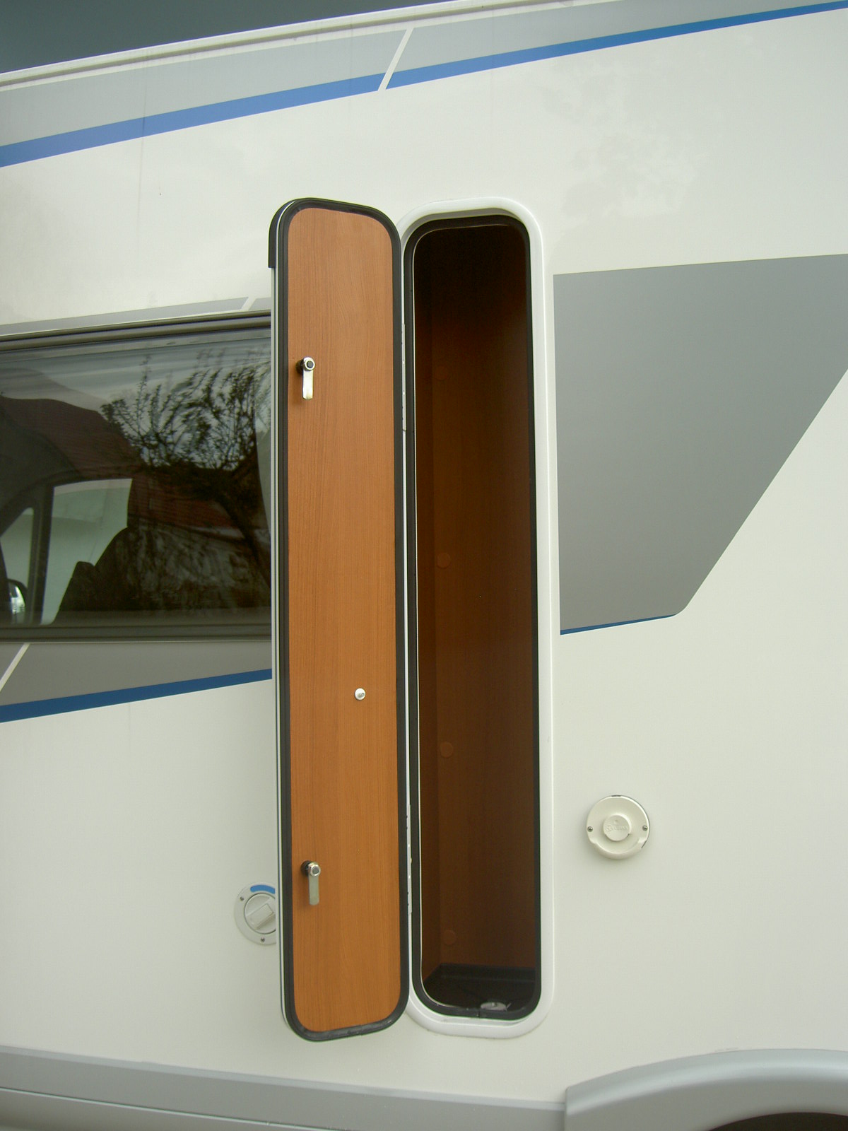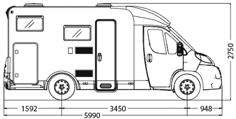 Seitenstauklappe, großer Stauraum, Fahrzeuglänge 5,90 m, ideal für 2 Pers.