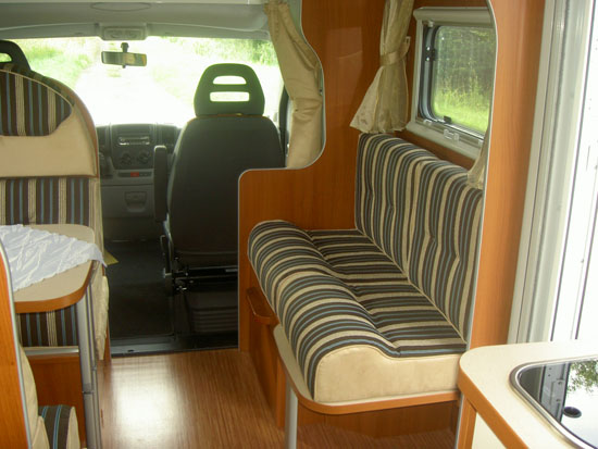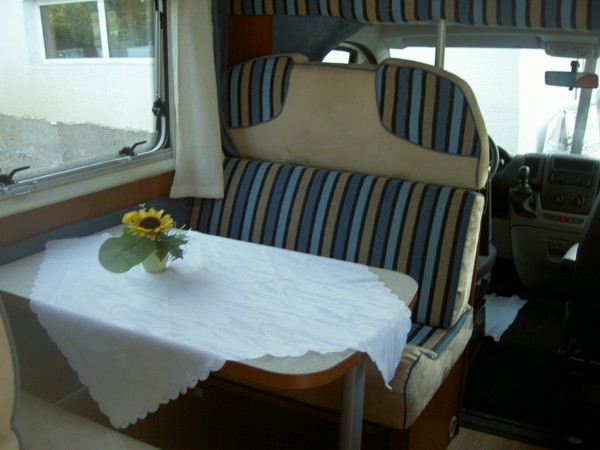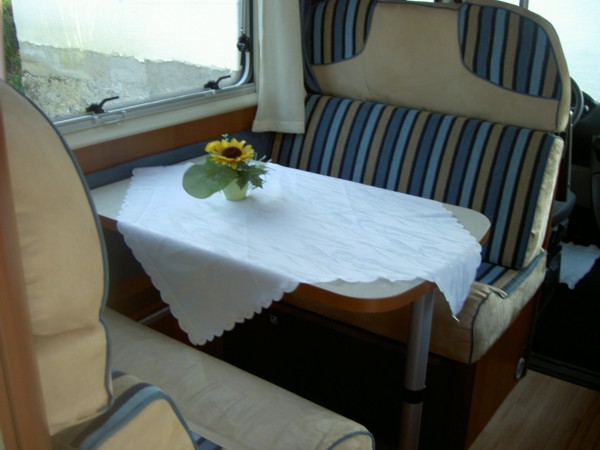 Schlafplätze, 4 Sitzplätze, 2er Sitzgruppe, Fahrer- und Beifahrersitz drehbar,