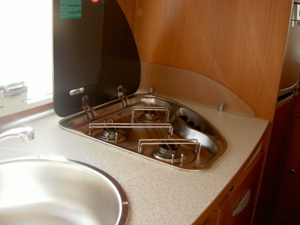 Komfortpaket, ABS, ASR, Airbag, Klimaanlage, Alkoven, 4 er Sitzgruppe, Etagenbetten quer, Markise, Radio CD, Fahrradträger, Dusche, WC, Warmwasserversorgung, Heizung, Etagenbett hochklappbar, 2 Außenstauklappen