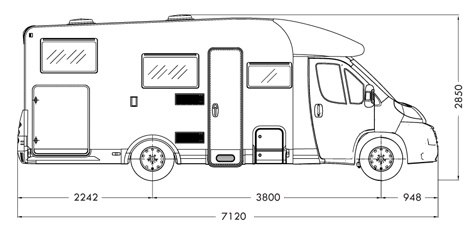 Länge: 7120 mm, Breite 2.350 mm, Höhe: 2.850 mm