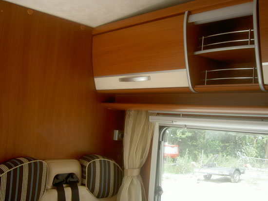 Komfortpaket, ABS, Airbag, Breitspurfahrwerk, Klimaanlage, Alkoven, 4er Sitzgruppe, Seitensitzbank oder Tisch mit weiterem Sitz, Etagenbetten quer hochklappbar, 2 Garagentüren ( 130 hoch ), Markise, Radio CD, Fahrradträger, Dusche, WC, Warmwasserversorgung, Heizung, Kühlschrank 150 Ltr mit separatem Gefrierschrank, Doppelarmlehnen, klappbarer Alkoven, Fliegenschutztüre