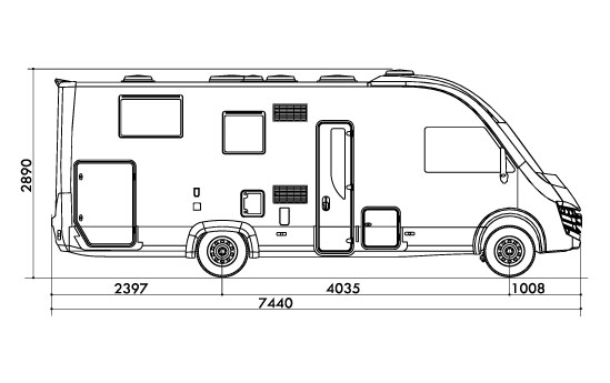 744 cm lang, inkl. Fahrertüre,