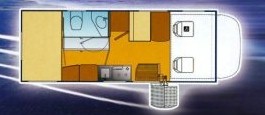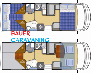 Vordersitzen, 4 Schlaf und 4 Sitzplätze, Hubbett Fahrerhaus, Gasbackofen,