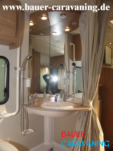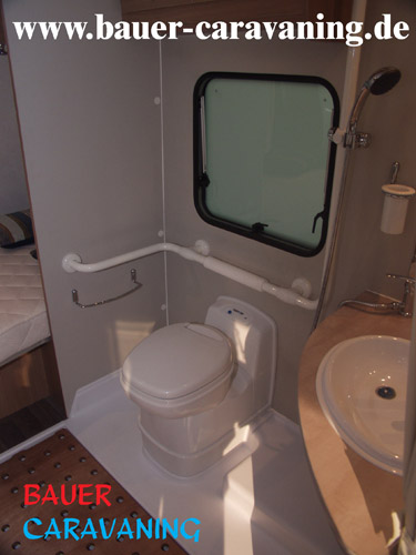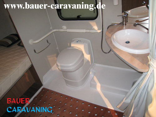 getrennte Dusche, Winkelküche, Halbdinette mit Seitensitzbank und drehbaren